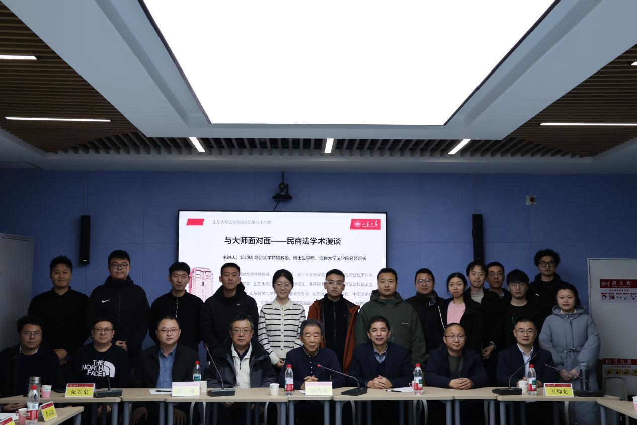 12月26日,“山东大学法学高端论坛”第八十六期于青岛校区华岗苑举办。烟台大学法学院名誉院长郭明瑞教授围绕民商法领域的前沿理论与实践难题展开学术漫谈。讲座由山东大学法学院张平华教授主持,烟台大学法学院关涛教授、张玉东教授,山东大学纪检监察学院刘经靖教授,山东大学法学院迟德强副教授、宿营讲师,中国海洋大学法学院瞿灵敏副教授,青岛科技大学法学院宋文静副教授,山东财经大学法学院王仰光副教授,山东农业大学侯圣贺副教授担任与谈人,法学院三十余名师生参与讲座。