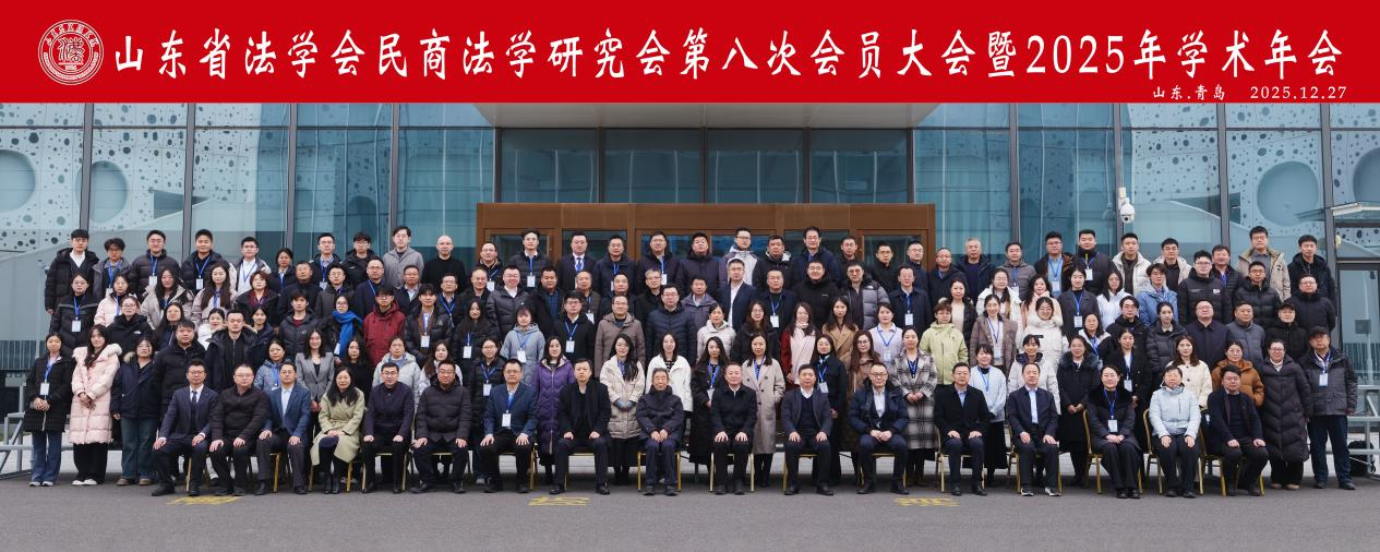 2025年12月27日,山东省法学会民商法学研究会第八次会员大会暨2025年学术年会在青岛顺利召开。本次会议由山东省法学会民商法学研究会主办、山东大学法学院承办,来自全省高校、司法机关、行政机关及法律实务界的百余名专家学者齐聚山海之间,共襄盛举,围绕民商法理论前沿与实践热点展开深入研讨,并顺利完成研究会换届选举工作。