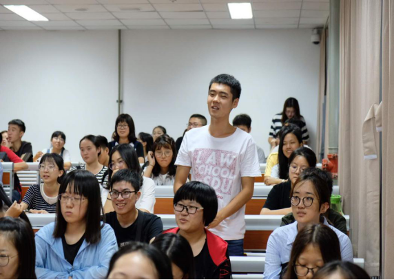 张海燕勉励同学们在大学生活中严于律己,奋力拼搏;她介绍了法英双学位班的基本情况和推免保研政策,希望同学们可以通过自己的努力能取得满意的成绩,在大学生活中不留遗憾。郑智航则认为同学们现在已经完成了“平凡人”到“法律人”的转变,要对法学心存敬畏,他向同学们提出了法律人应该具备的素质:正直和诚实,平等与独立的品格,自由与自律和遵守规则。李道军感谢了家长对学生们的培养与付出,希望家长与学生之间多一些沟通交流、多一些激励,接着表达了对同学们的嘱托和勉励。王苗雨则和大家分享了法学院学生工作概况和学院的国际化战略,向同学们介绍了青岛校区的书院制和发展导师制,她提醒同学们时刻注意身边的安全隐患,提高安全意识。