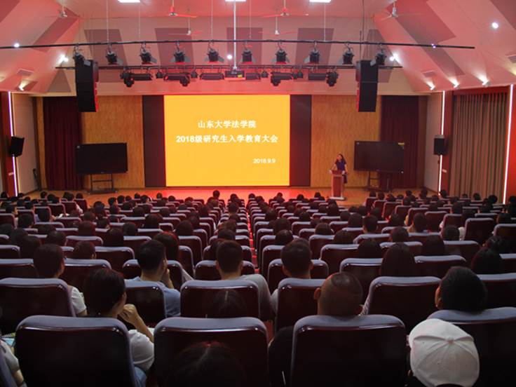 9月9日晚7点,山东大学法学院2018级研究生入学教育大会在青岛校区会文南楼二楼报告厅成功举行。法学院党委书记周长军教授、副院长张海燕教授、院长助理郑智航教授、导师代表李道军教授、迟德强副教授,以及研究生办公室乔国老师、杨震老师、李丽老师,2018级研究生辅导员吕怡然老师出席大会,大会由郑智航主持。