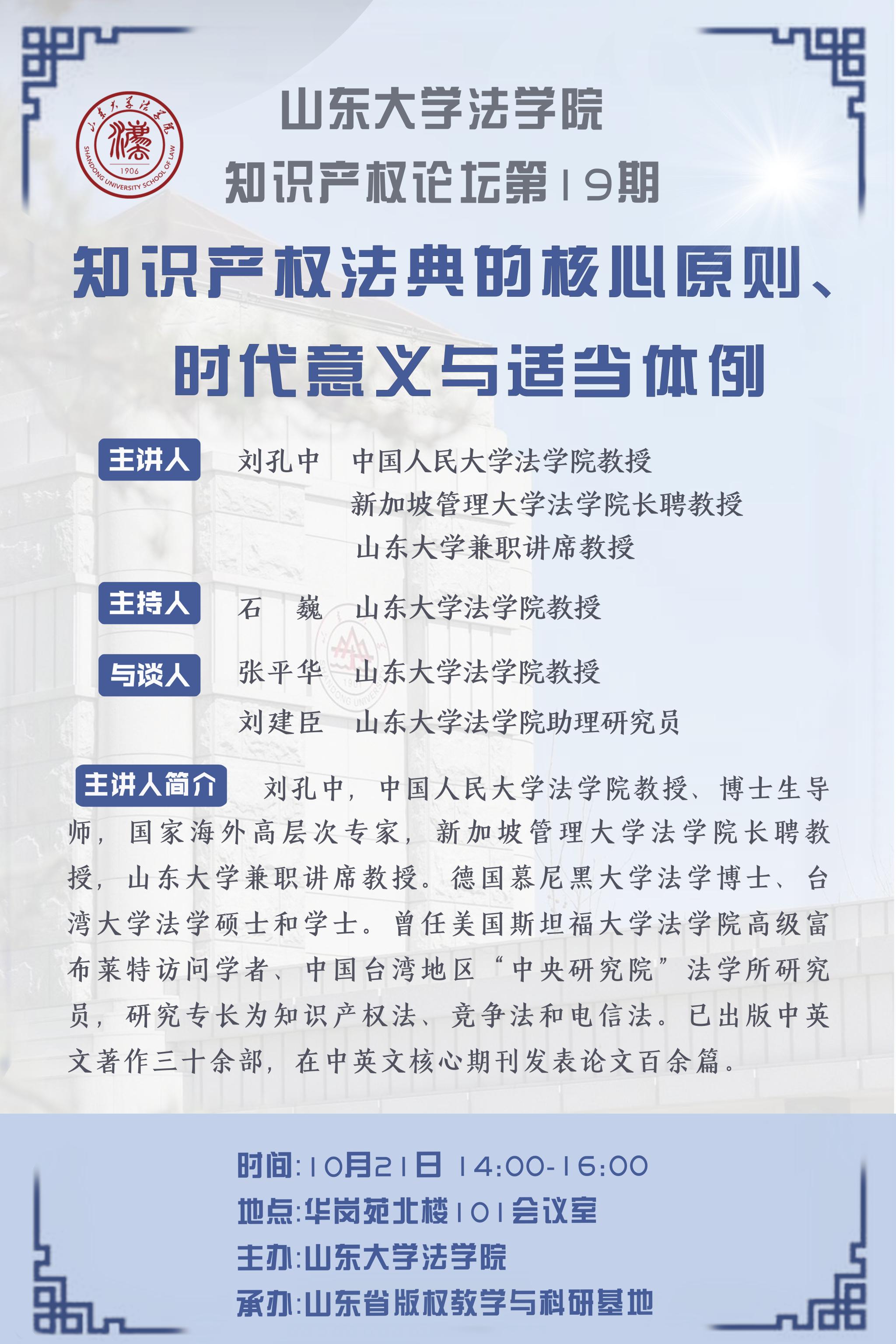 讲座预告 | 山东大学法学院知识产权论坛第19期:知识产权法典的核心原则、时代意义与适当体例