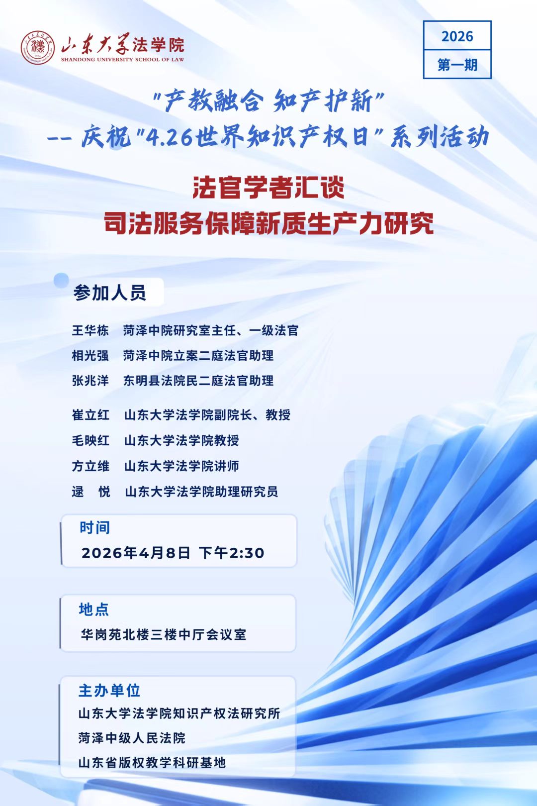 讲座预告 | “产教融合 知产护新”——庆祝“4.26世界知识产权日”系列活动:法官学者汇谈 司法服务保障新质生产力研究
