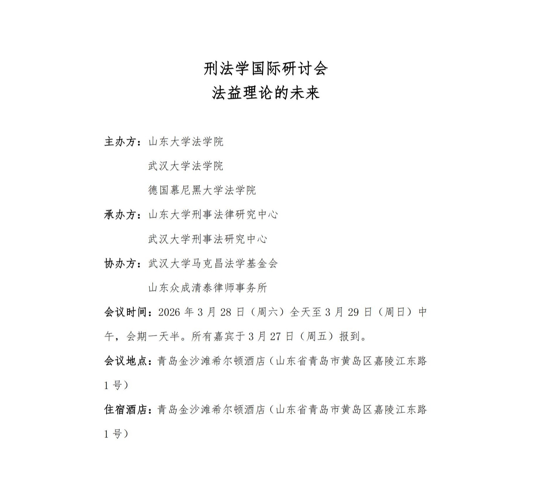 刑法学国际研讨会会议议程——法益理论的未来