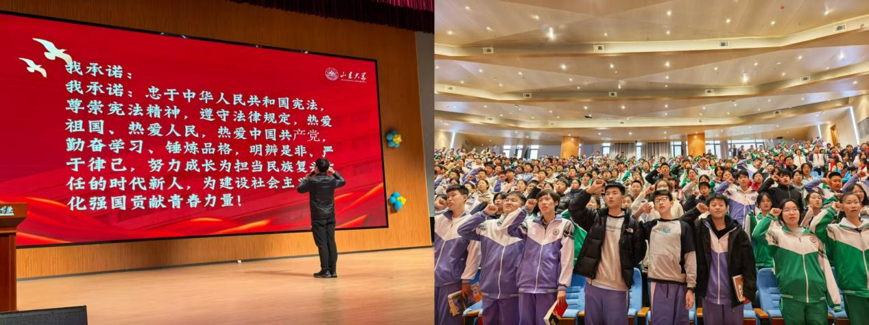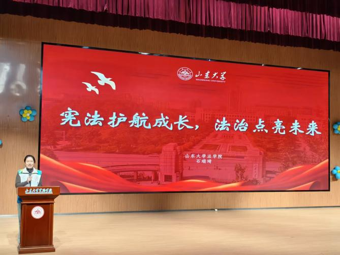 为弘扬宪法精神,增强法治意识,在12月4日国家宪法日即将来临之际,山东大学法学院2025级涉外法治人才培养实验班(日韩法方向)联合法学院学生会实践服务部前往山东大学实验学校(青岛蓝谷中学)开展“法心润苗,与宪同行”国家宪法日主题普法活动。