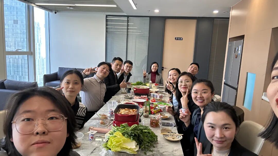 于我而言,乾成不仅是一个充满机遇、让我成长的平台,更是一个温暖有爱的大家庭。工作最后一天,全所同事一起吃了火锅和水饺为我送行。大家笑着说“上车饺子下车面”,把所有的祝福与不舍,都放在了那顿热辣滚烫的团圆饭里。那一刻,我深深感到,自己不只是此处的过客,更是被家人般送别的游子。
