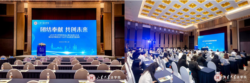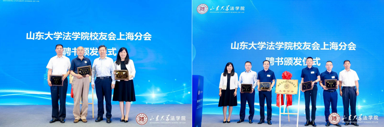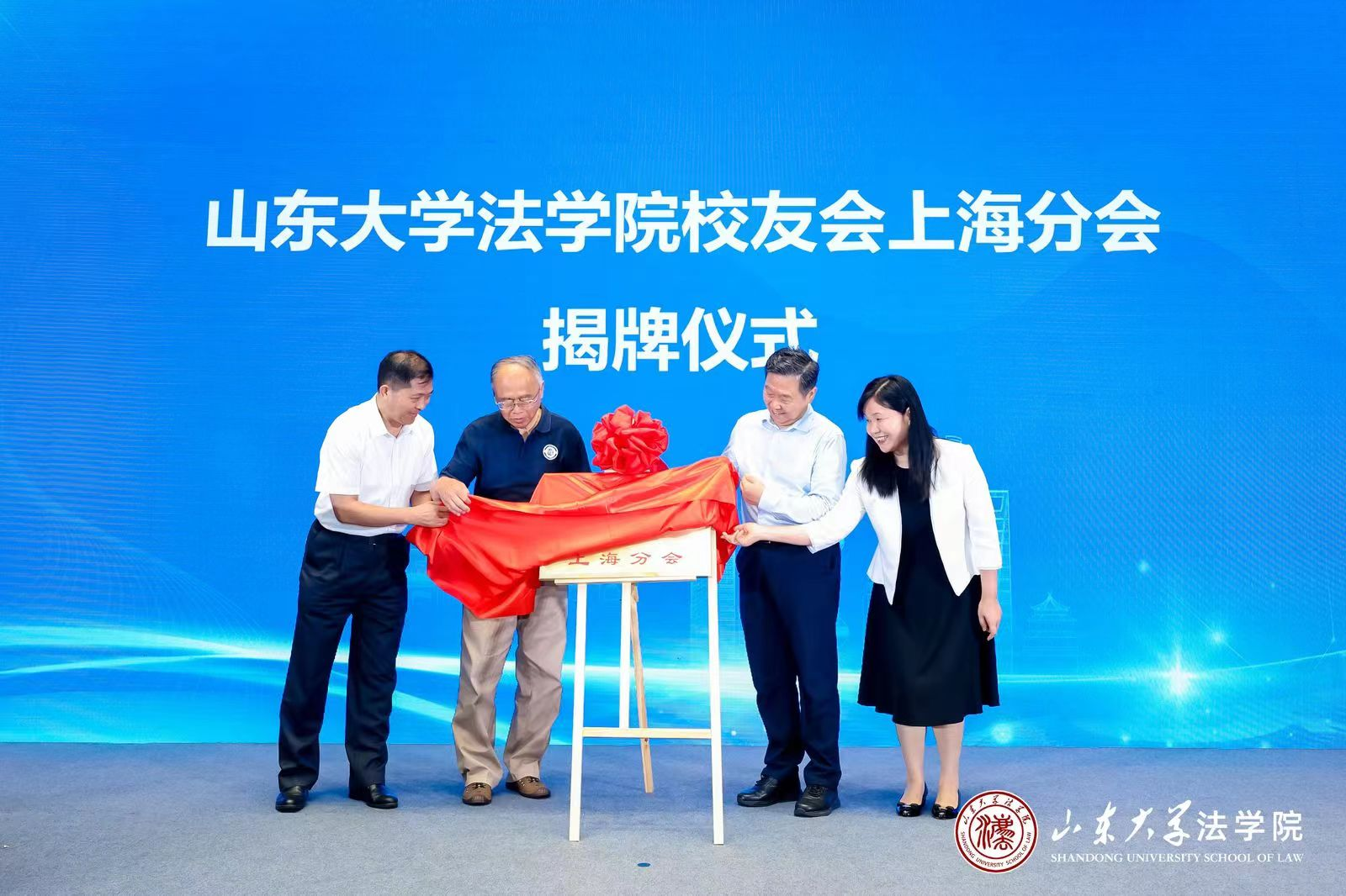 讲座结束后,山东大学法学院校友会上海分会迎来成立庆典。徐显明教授、刘士国教授、范进学教授和于改之教授共同为山东大学法学院校友会上海分会揭牌。