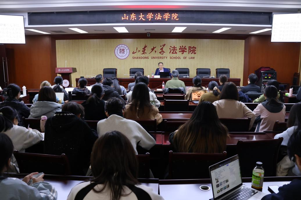 10月31日,“山东大学法学青年论坛”第十八期于青岛校区华岗苑举办。南开大学法学院胡建国副教授以“中美经贸博弈中的‘法律战’”为题作学术报告。讲座由山东大学法学院向力副教授主持,纪检监察学院姜世波教授、法学院田立副教授担任与谈人,法学院百余名师生参加讲座。