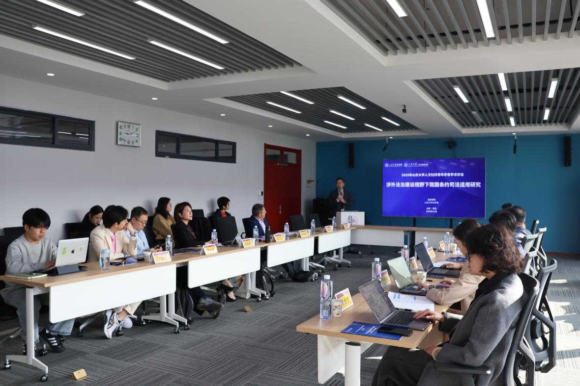 11月1日,2025年山东大学人文社科青年学者学术沙龙“涉外法治建设视野下我国条约司法适用研究”于青岛校区华岗苑举办。本次活动由法学院主办、人文社会科学青年学者学术沙龙资助,法学院对外经贸法律与争端解决研究中心副主任向力副教授发起,共邀请十余位涉外法治领域的学者与实务专家参与沙龙。
