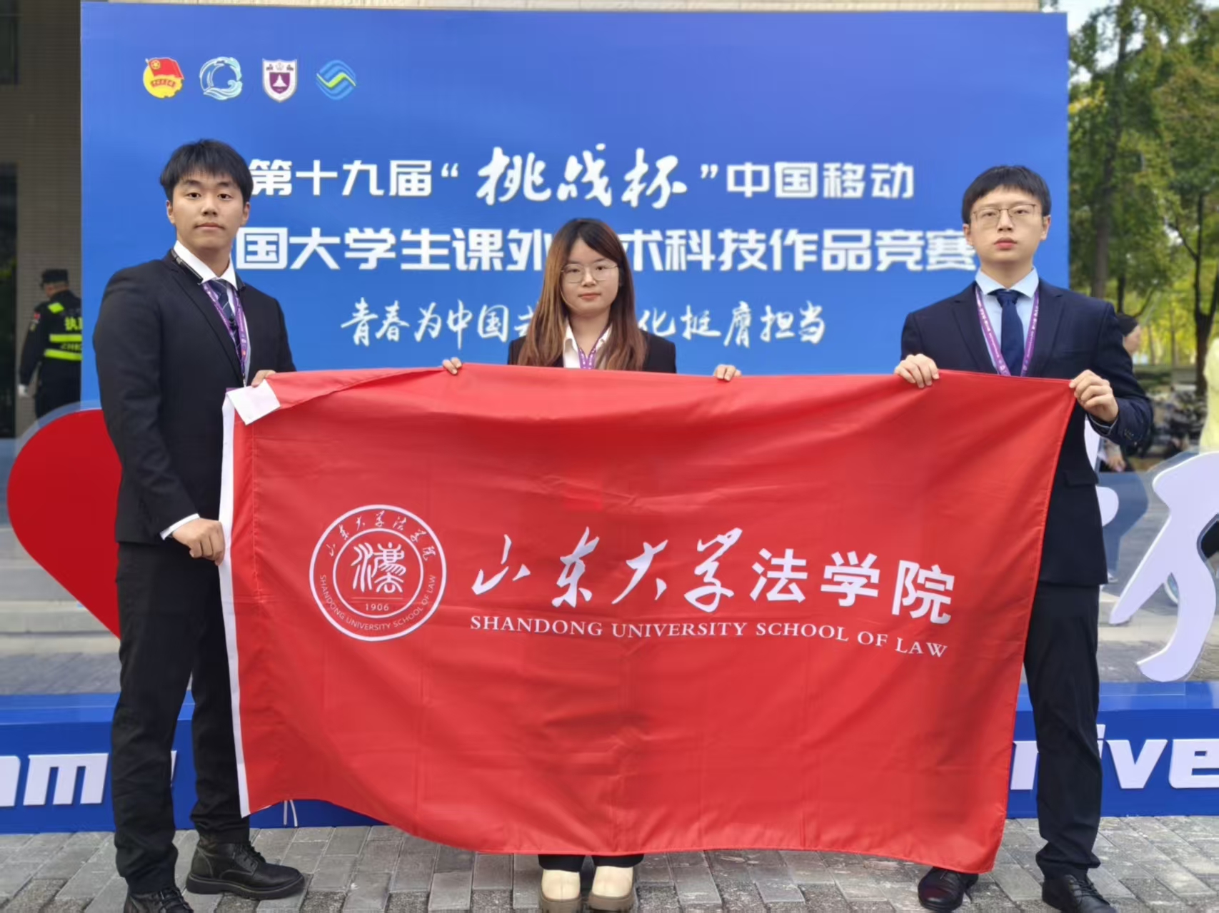 10月31日至11月3日,第十九届“挑战杯”全国大学生课外学术科技作品竞赛决赛阶段在南京大学举办。山东大学法学院“算法之治”团队荣获全国一等奖,“净语止戈”团队荣获全国三等奖,实现学院在“挑战杯”国赛主体赛道中的全新突破。