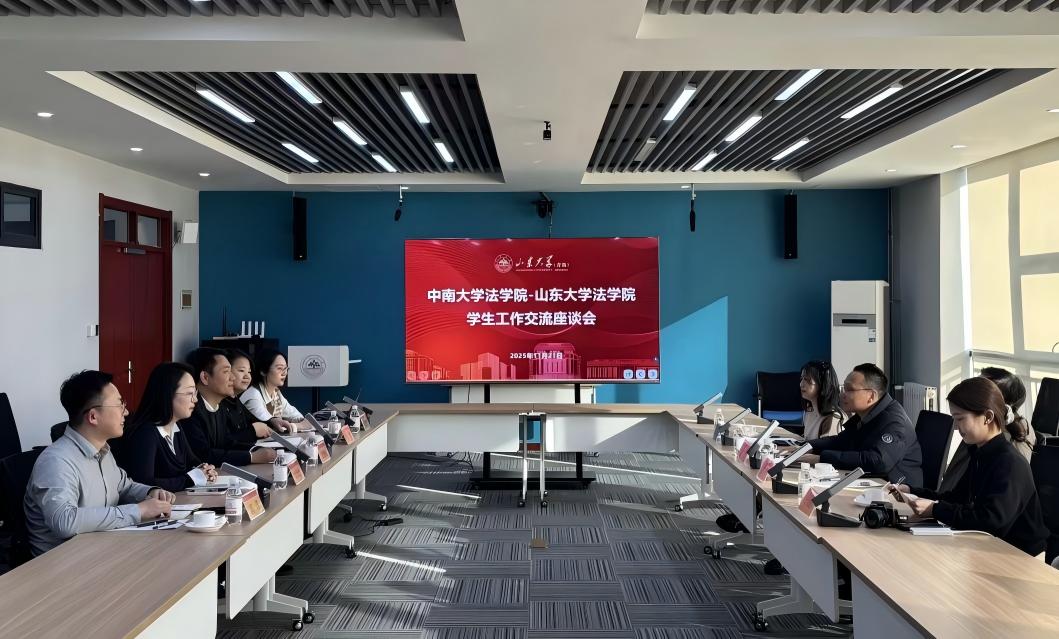 11月21日下午,中南大学法学院党委副书记刘勇、教授敖双红、学工办主任李亚萍、团委副书记姜梦媛一行到我院就学生工作开展调研交流。山东大学法学院党委副书记宋继斌,团委书记曲仪,辅导员吕怡然、黄憬怡、高洋参加座谈。