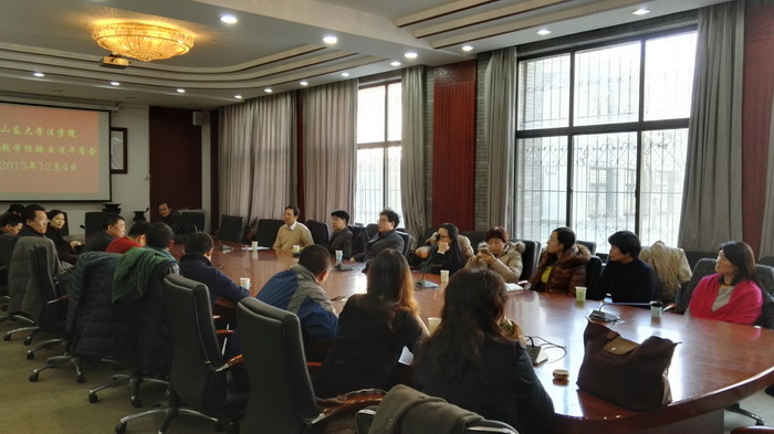 活动中,本科生院教学督导员李道军教授从教师风范、教学内容、教学方法和教学技术四个方面给大家介绍了教学过程中应该注意的问题。柳忠卫教授给大家分享了自己多年来教学过程中的经验和做法。随后,就现阶段学生反映的平行课程设计问题和青岛校区本科生课程设计两个主题,与会老师皆提出了自己的看法和建议。就平行课教学问题,刘加良副教授认为平行课程老师要加强沟通交流,以统一出卷,流水阅卷的方法解决平行课程分数差异大的问题。金永完副教授则从海外大学的经验入手提出要建立共同标准。刘宏渭副教授和冯俊伟博士也都将自己在平行课程教学方面的成功经验和感悟与大家进行了分享。就青岛校区法学院本科生课程设计主题,老师们畅所欲言。黄士元副教授建议同一课程由多个老师分时段授课或者压缩课时量。江照信副教授和满洪杰副教授则建议以大班授课的形式来缓解师生济南青岛两地的状况。法学院新进老师郑栽骏教授、戴宗翰副教授和李本灿博士认为大家经验的分享和交流对于以后的教学会起到积极作用,他们结合自身教学过程中的问题与大家进行了分享和交流。其他老师也都结合实际情况提出了自己的建议。