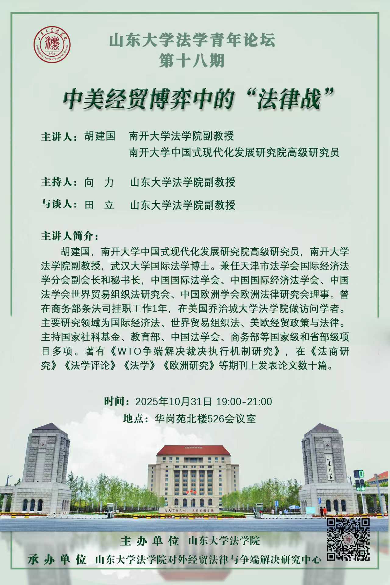 讲座预告 | 山东大学法学青年论坛第十八期:中美经贸博弈中的“法律战”