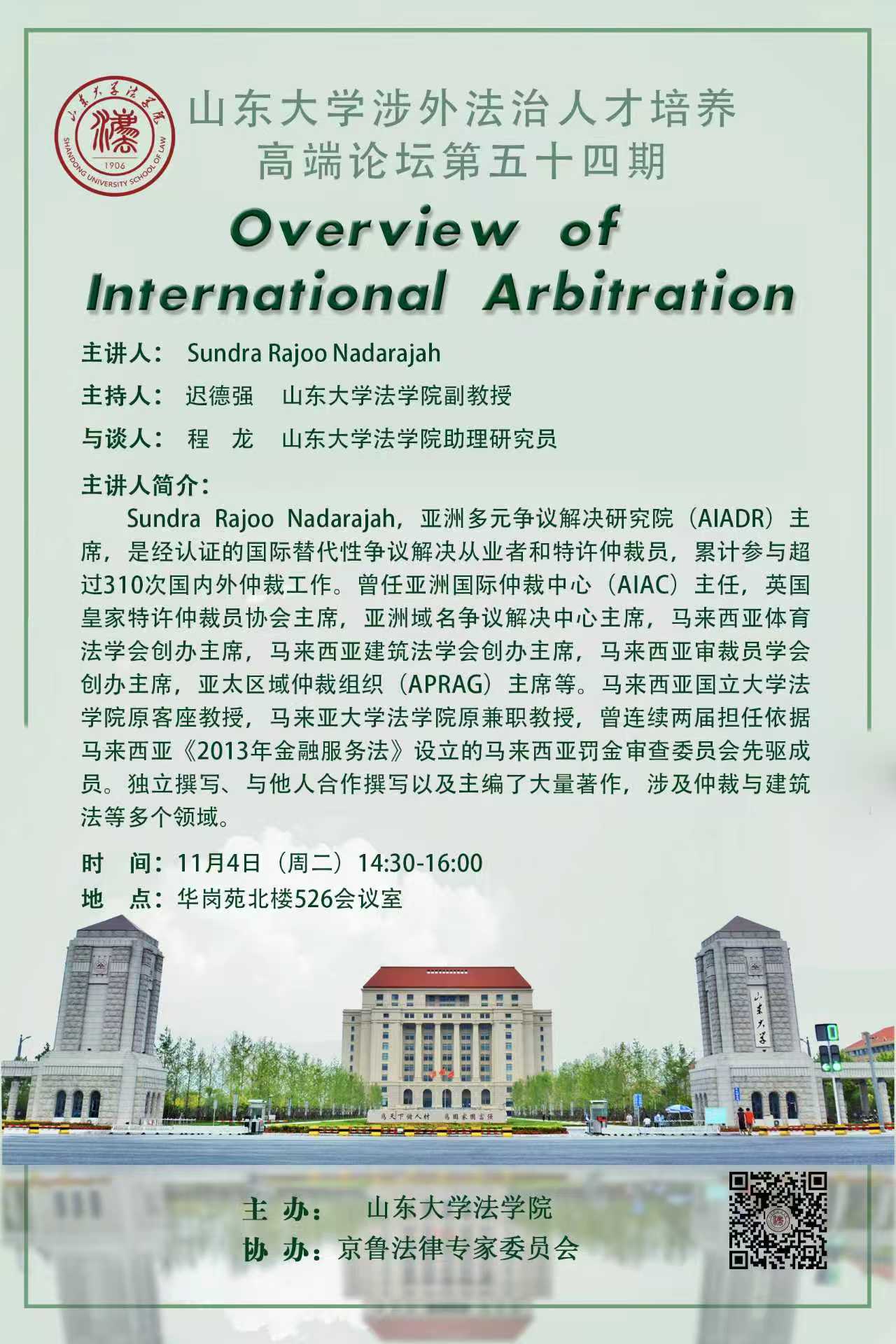 讲座预告 | 山东大学涉外法治人才培养高端论坛第五十四期: Overview of International Arbitration