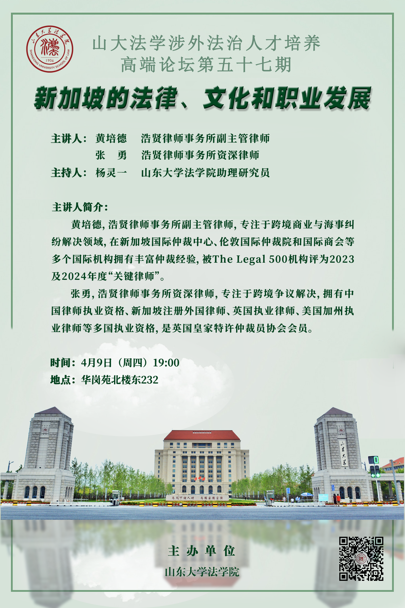 讲座预告 | 山大法学涉外法治人才培养高端论坛第五十七期:新加坡的法律、文化和职业发展