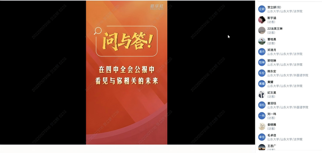 2025年10月29日,法学院本科生第二党支部开展《学习党的二十届四中全会精神》专题学习,支部书记付聪同志组织,全体党员与发展对象参与。此次专题学习以视频学习、材料研读相结合的方式,实现了理论学习与专业实践的深度融合。