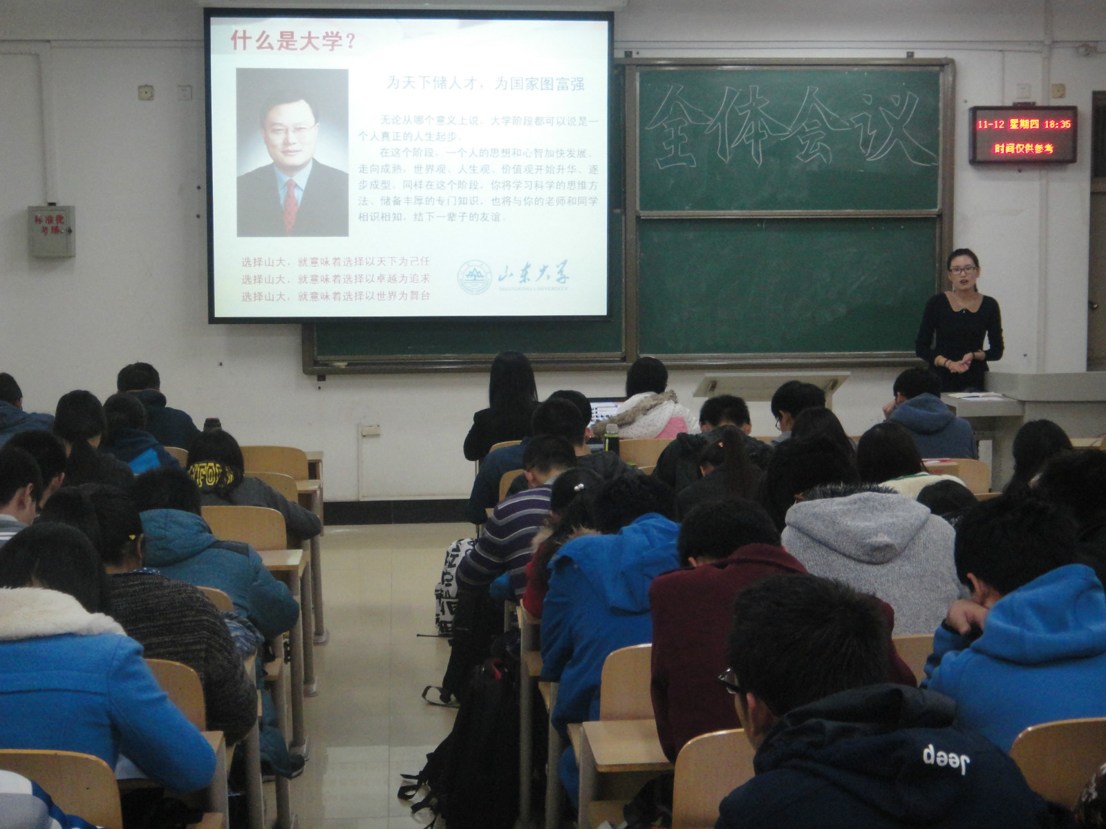 1112日晚6点,2015级本科在兴隆山校区5206召开新生职业生涯规划教育主题班会,辅导员于沂仟担任主讲,2015级全体新生参加。此次班会的主题是“精彩青春、领航人生”,旨在引导同学们树立生涯规划意识,做好大学生生涯规划,不辜负韶华,走好大学路,在山大遇见更的自己。